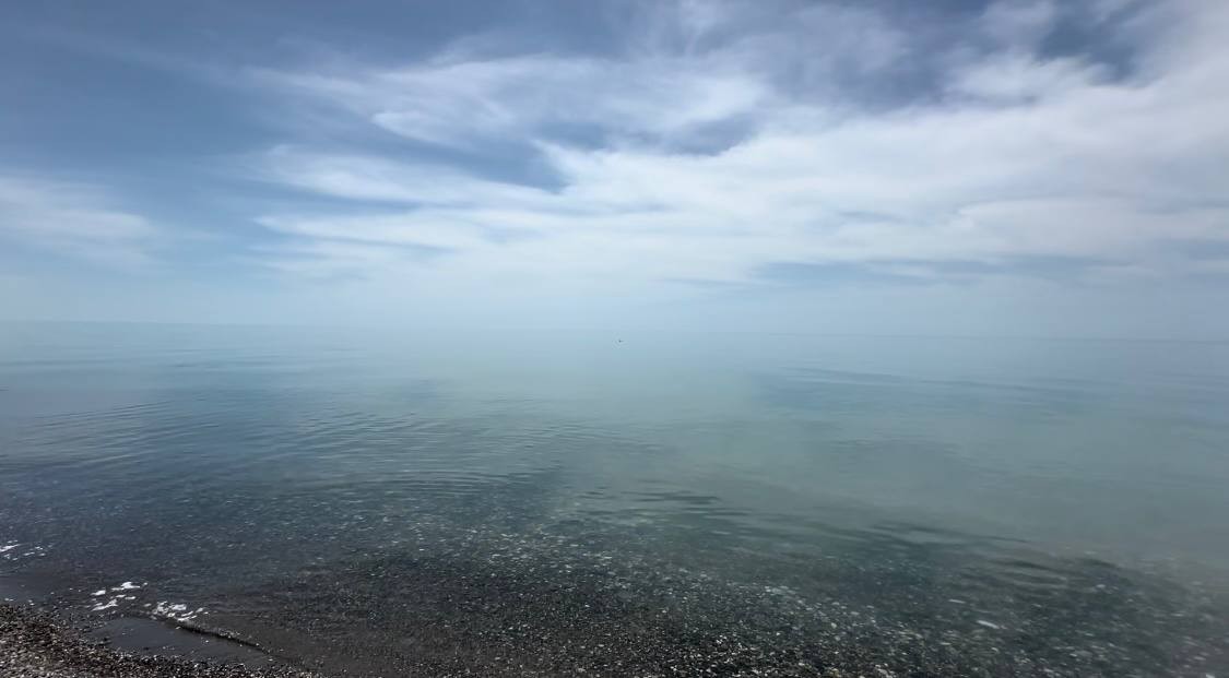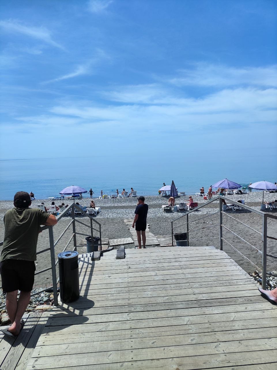 Море чистейшее, плавают медузы. Пляж галечный. Вода прохладная, градусов 16-17. Приятно освежает. Я плавать не стал, как-то холодно. А супруга меня удивила — устраивает заплывы минут по 10. И это при том, что она называет себя мерзлячкой.
