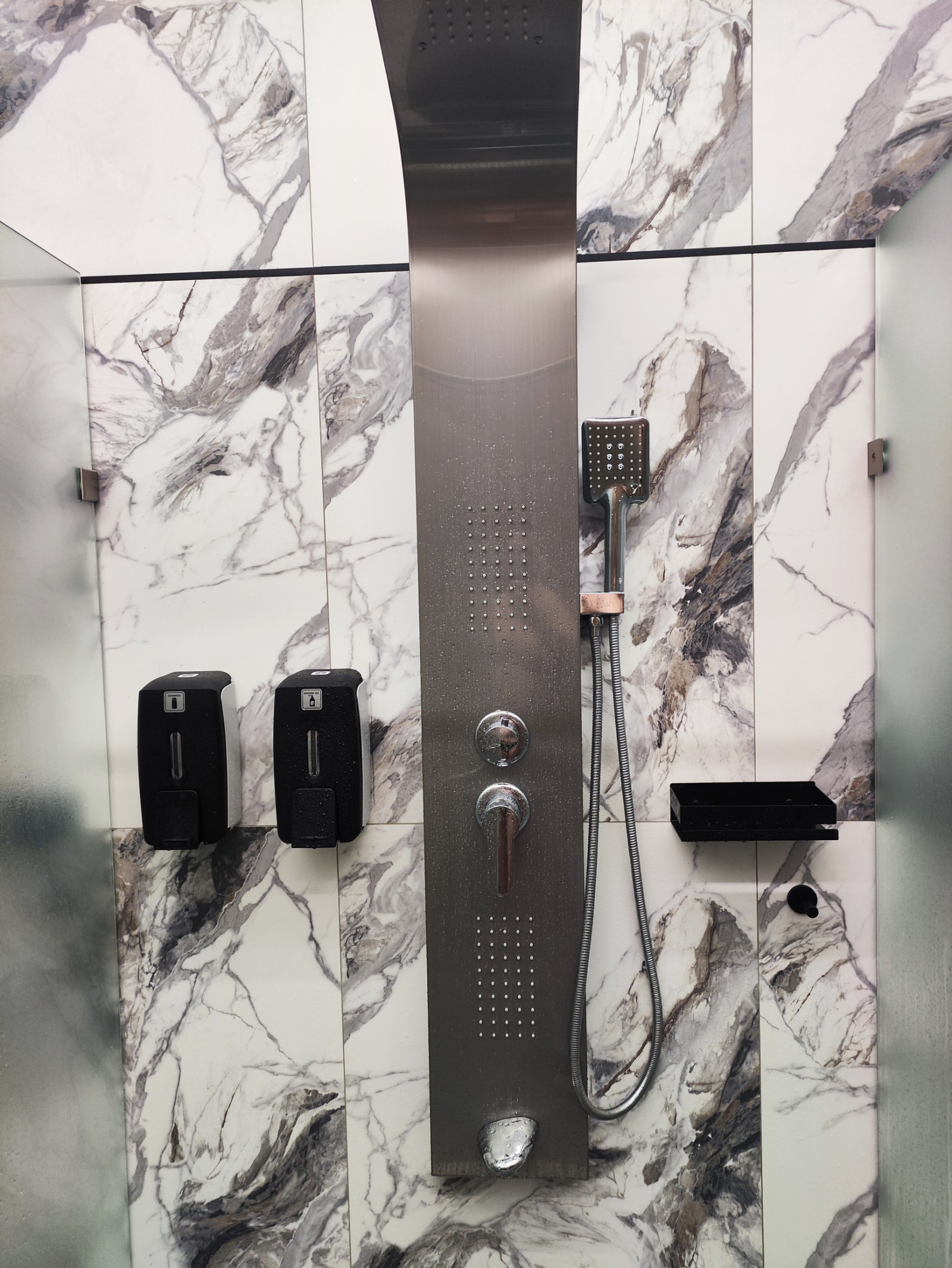 Душевые просто восторг. Разные режимы у лейки - тропический дождь, водопад, горизонтальный массаж. Есть отдельная ручная лейка, гель для душа и шампунь. В каждой кабинке. Да, кабинки там индивидуальный, закрываются стеклянной дверью — рай для стеснительных. И кабинок этих МНОГО. Реально много.