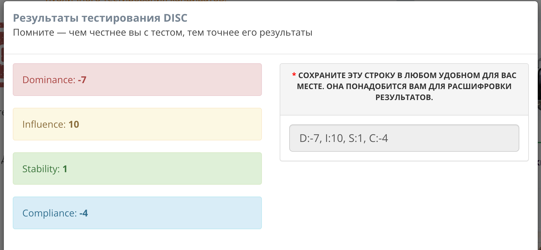 Эти знания, несомненно, помогут мне лучше понимать коллег и эффективнее выстраивать коммуникацию в команде. Теперь, зная свой профиль, я могу осознаннее использовать свои сильные стороны и работать над слабыми.