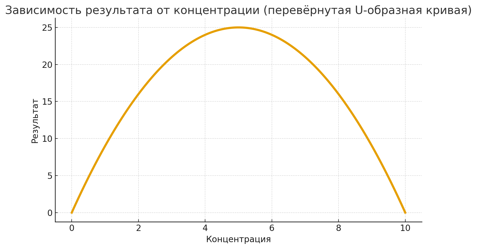 Суть закона проста: небольшое повышение концентрации улучшает результаты, но после определённой точки дальнейший рост фокуса начинает работать против нас. Представьте музыканта, который готовится к концерту. Лёгкое волнение помогает ему собраться, но чрезмерная концентрация на каждой ноте может привести к зажатости и ошибкам.