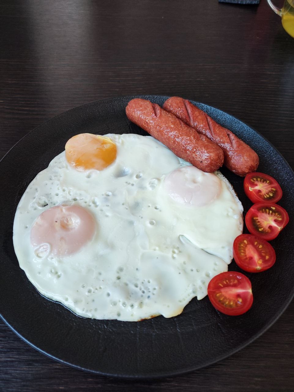 Из Минеральных вод меня с коллегой довезли на комфортном бизнес-такси Киа Оптима. Полтора часа — и мы на месте. В районе половины одиннадцатого. В одиннадцать поели вполне приличную яичницу с сосисками и помидорами, пообщались с коллегами, которые тоже сумели добраться. А в 14:00 нас наконец-то заселили.