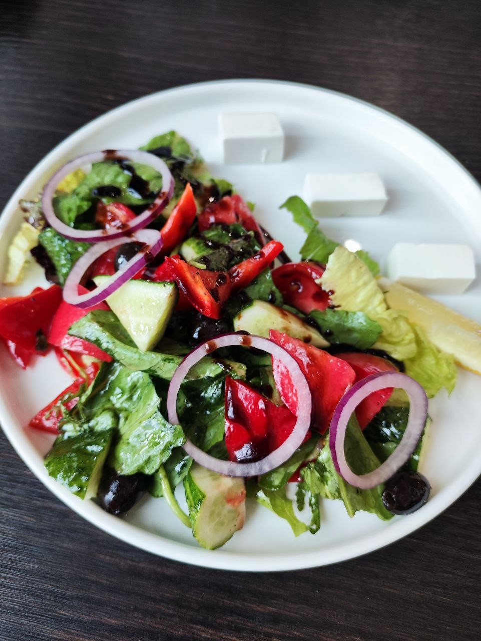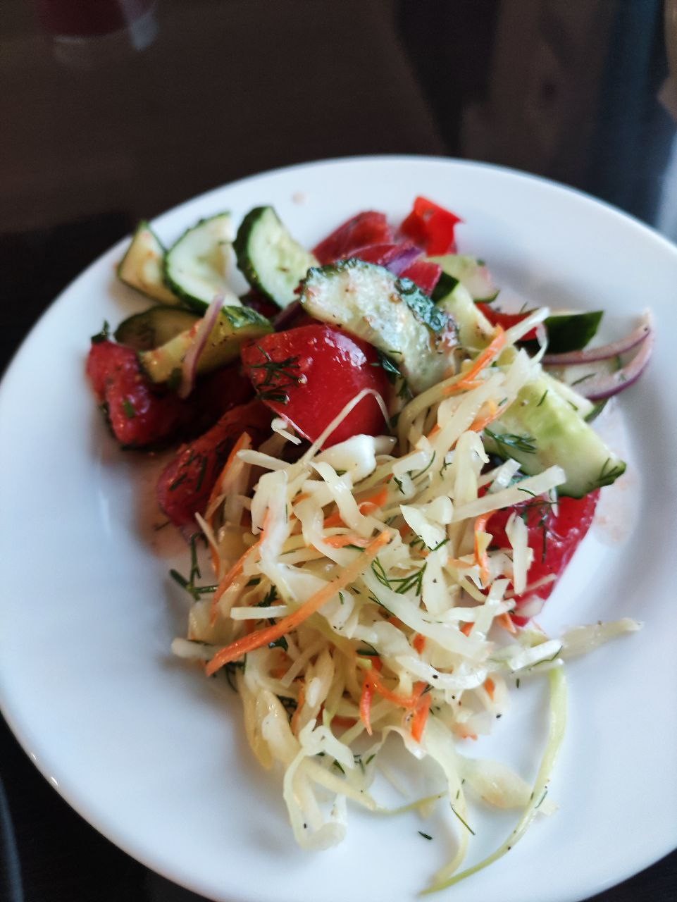 Изобилия блюд на шведском столе не было, но всё, что было — очень вкусно. Вот мой ужин. Ещё были суперские круассаны с шоколадной начинкой, но их я не сфотографировал.